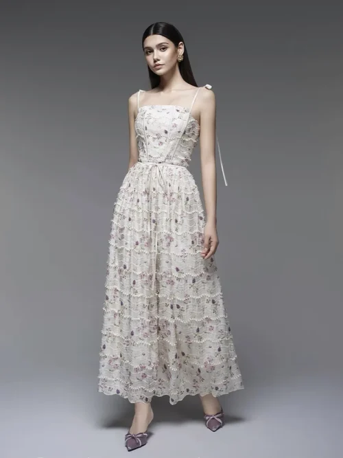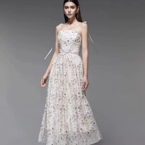 2025 New Design High Quality Elegant Fashion Dress Flower Strap Long Dress Holiday Style Young Women’s Long Dress