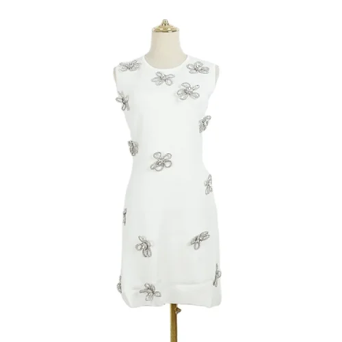 2025 New Summer Women French Chic Styles Sleeveless Knitted Dress Silver Rhinestone Flower Decorated Elegant Party Sundress