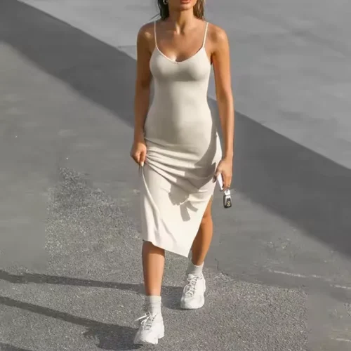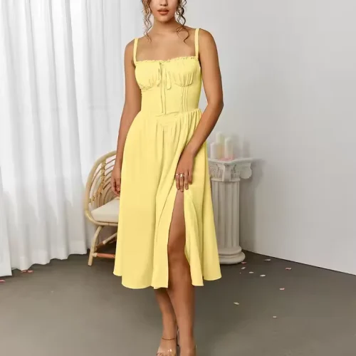2025 New Arrival Summer Women Midi Dresses Fashion New Halter Solid Color Casual Sun Dress for Woman