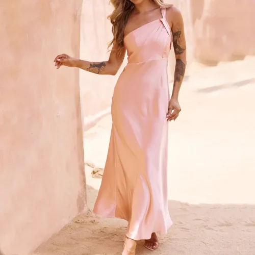 2025 New Design Ladies Summer Dress Women Halter Sleeveless Flowing Long Dress