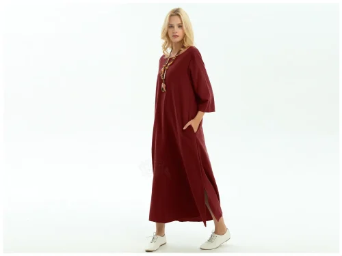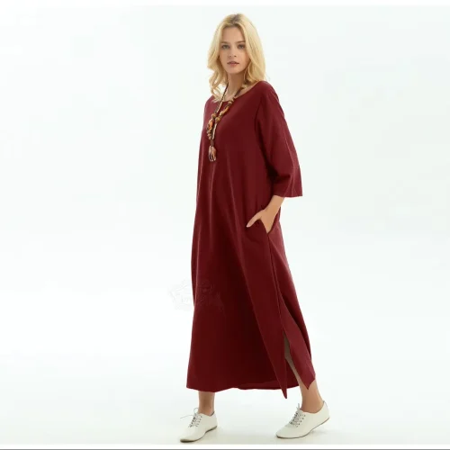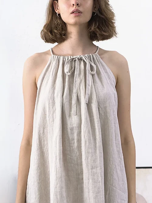 2025 Spring and Summer Loose Plus Size Dress Cotton and Linen Big Pocket Linen Long Over the Knee A-line Dress