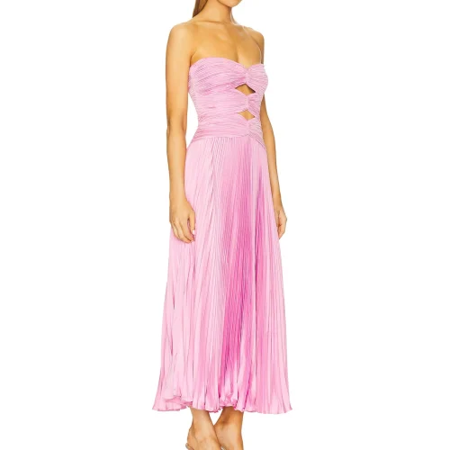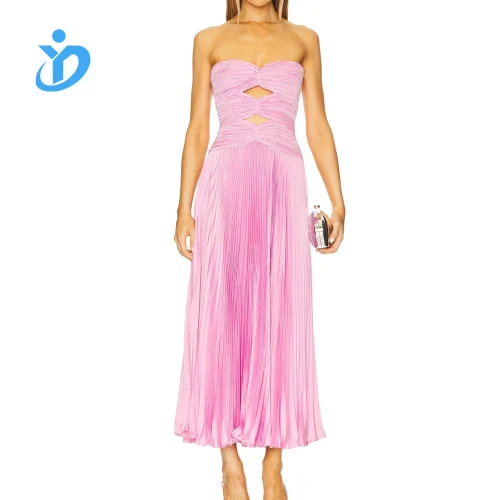 2025 New Women Clothing Pink Lady Elegant Sexy Strapless Cut Out Twist Casual Wedding Party Satin Sleeveless Pleated Maxi Dress