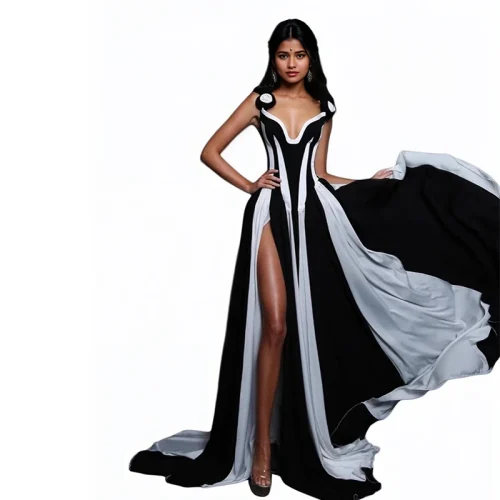 2025 Olaesa New Design Elegant Sleeveless Knitted Chiffon Tulle Patchwork Maxi Dress Black White Hem Sling Dress