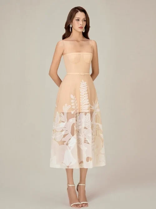 2025 Summer High Quality Elegant Sleeveless Long Dresses for Women Thin Straps and Long Embroidery for Parties