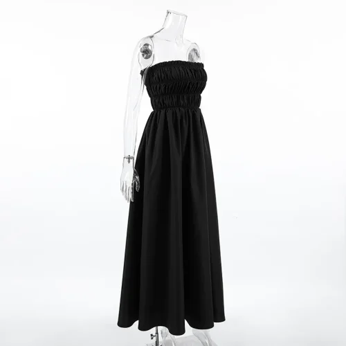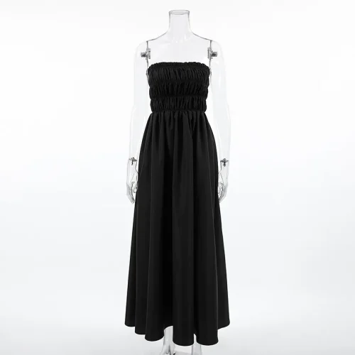 2025 Summer New Fashion Dresses Women Sleeveless Seaside Holiday Black Dress Female
