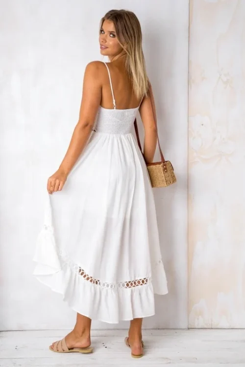 2025 Summer Boho High Low Women White Sun Dresses