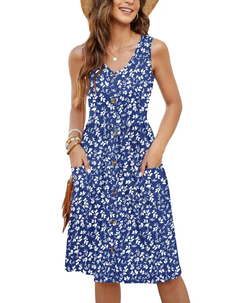 2025 Women’s Casual Summer Midi Dress Sexy V Neck Print Sleeveless Sundress with Natural Waistline Washable Silk Screen Printing