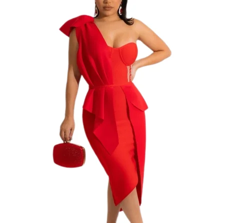 2025 Summer Women’s New Style Sexy Form-fitting A-line Fashion Dress with Tie-Up Skirt