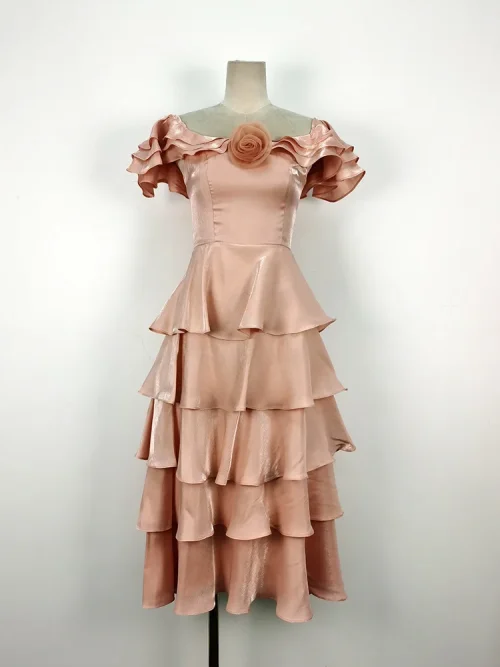 2025 Women’s Luxury Linen Dress High Quality Fashion Elegance Long Summer Dress With Flounces Sexy Style Pattern Decoration