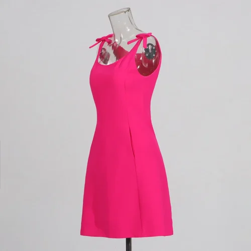 A-line Dress 2025 Summer New Style U-collar Bow Decorated Sexy Halter Dress