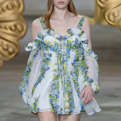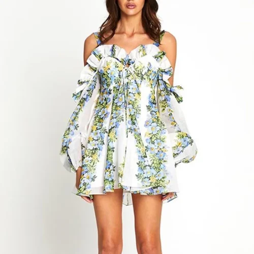 A-line Vestidos Summer Women Beach Sundress Chic Floral Print Pleated Slip Dress Elegant Korean Fashion Fairy Dresses
