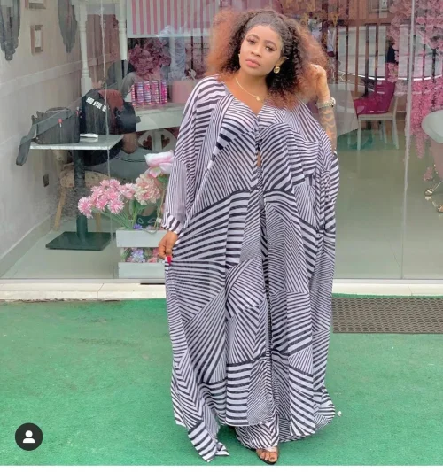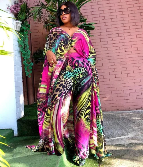 African Loose Lace Dresses and Fashion Chiffon Sundress Digital Print Plus-size Fashion Suit Gown with Slacks