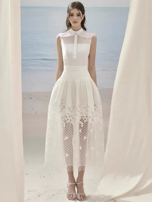 Boutique Women’s 2-Piece Elegant Evening Dress New Round Neck Fashionable Embroidered Mesh