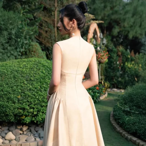 Boutique 2025 Fashion Brown Luxury Round Neck Long Dress High Waist Slim Elegant Casual Dresses Party