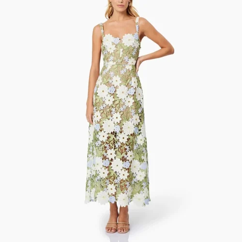 Brand ization Hollow Out Design Floral Print Long Women Cut Flower Decorated Front Floor-Length Suspender Tube Maxi Dress