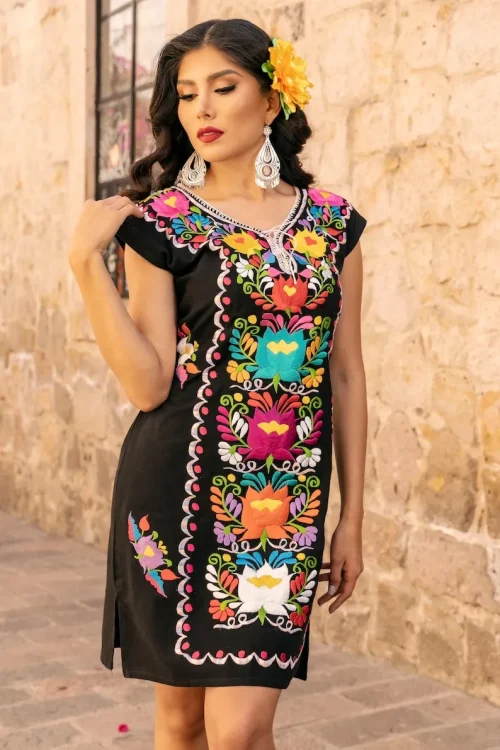 Casual Mexican Bohemian Dresses Ethnic Long Gown Tropical Sundress Unique Maxican Boho Outfits Peasant Clothes Floral Dress