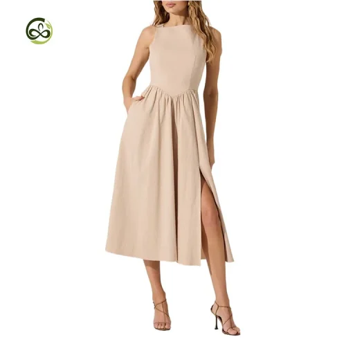 Casual Sleeveless Dress High Quality Elegant Fashion Natural Waistline Woven Pattern Solid Pattern