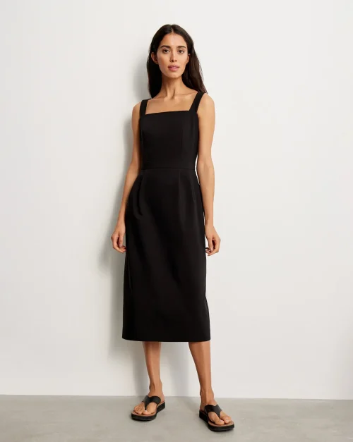 Casual Summer Sleeveless High Waist Plain Sheath Sundress Midi Dress for Women