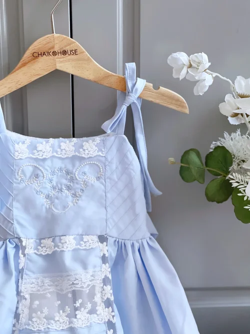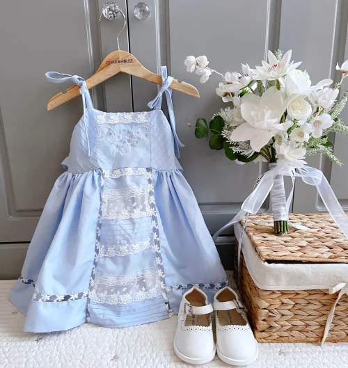 Connect Lace Machine Embroidery Sundress Baby Girl Cotton Dress Blue Sleeveless Comfortable Style – Eser Dress