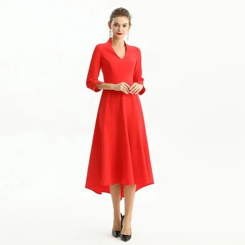 D186 Odm Low Moq High Quality Fashion Elegant Long Office Career Formal Made Casual Dress