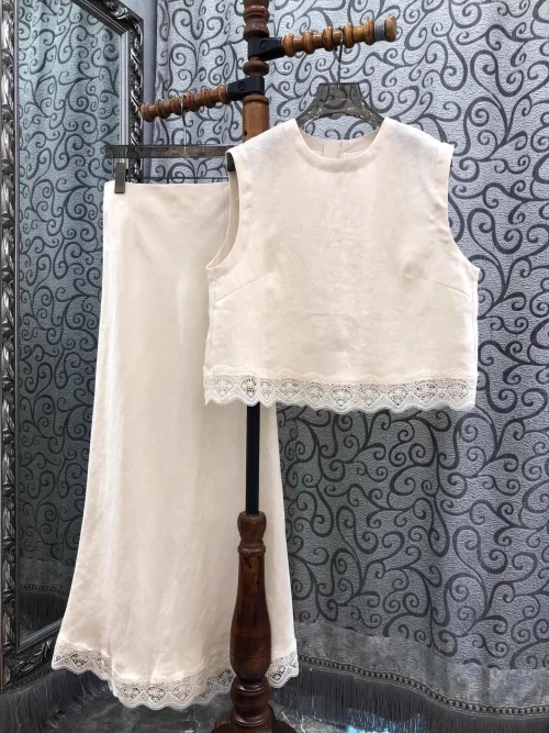 Crop Sets 2025 Summer Fashion Long Skirt Suit High Quality Lady Lace Patchwork Sexy Crop Tops+High Waist Long Skirt Sets 2pcs