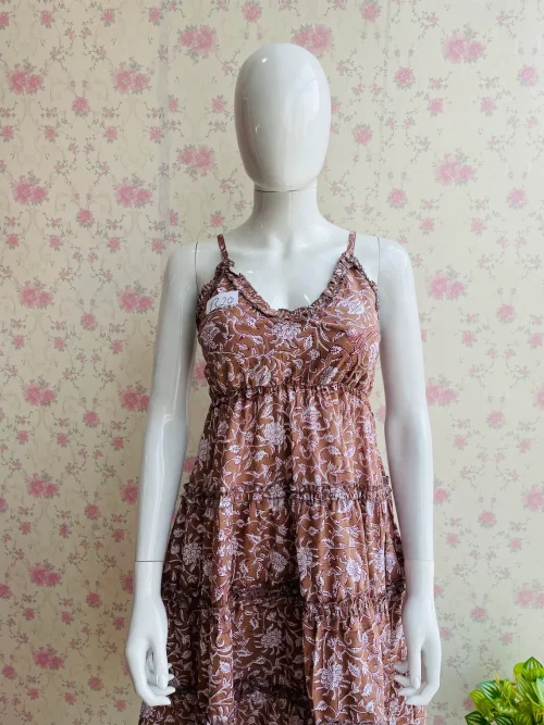 Cotton Hand Block Printed Fabric Dress With Smoking Waistline & Pockets Maxi Standard Summer Casual Women Clothing
