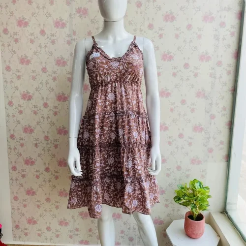 Cotton Hand Block Print Short Dress Women Dress V-Neck Party Dress