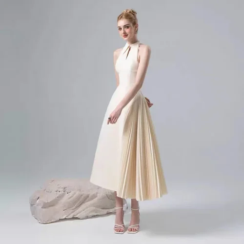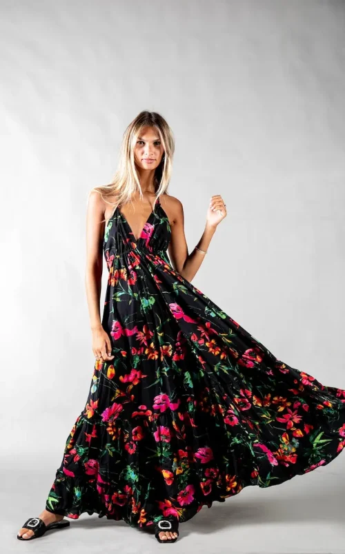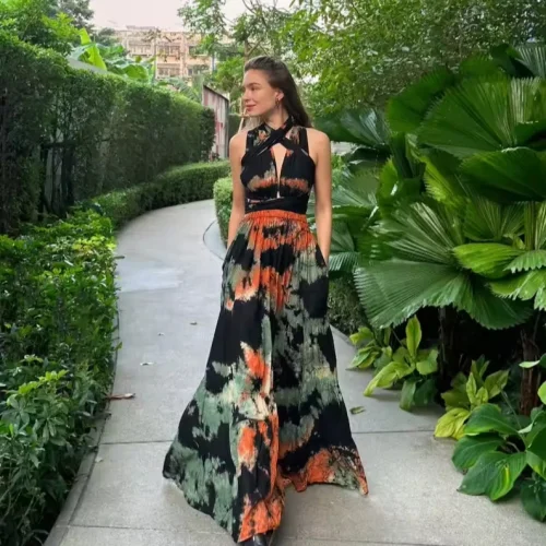 2024 Latest Fashion Summer Collection Halter Neck Dress for Women Tiered Maxi Dress Lady Elegant Casual Female Dress