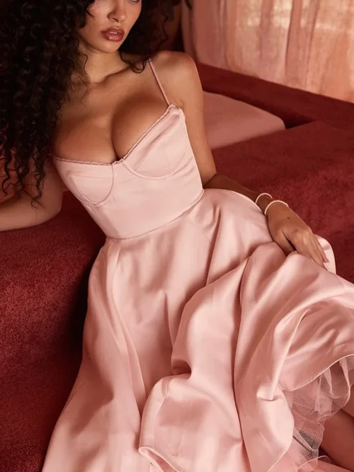 2024 New Arrival High Quality Elegant Evening Dresses for Women Slip Sexy Club Party Dress with French Lace Digital Printing
