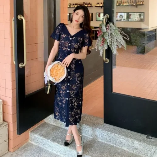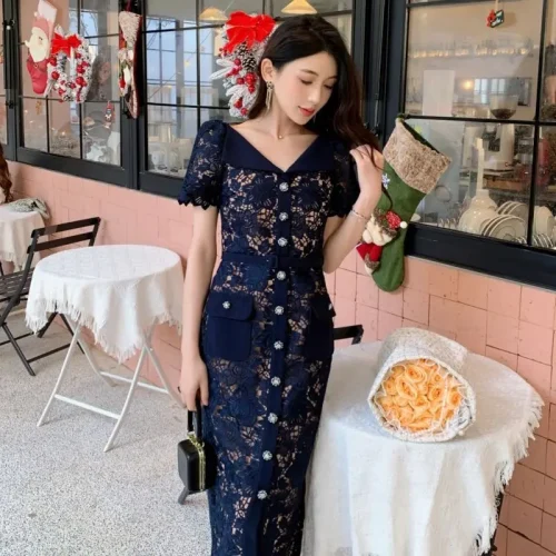2024 Lace Lapel Slimming Luxury Women’s Evening Party Dresses Casual Elegant Dress