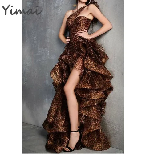 High Quality One Shoulder Sleeveless Long Dress New Style Irregular Party Club Leopard Print Evening Dress