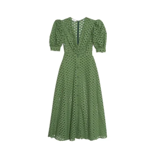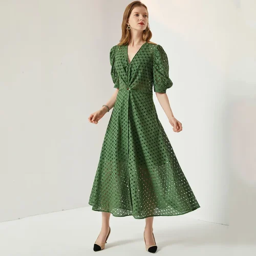 Summer New Hollow Bubble Sleeves Stunning Green Dress Beach Skirt Beach Vacation Long Skirt up to Ankle Length