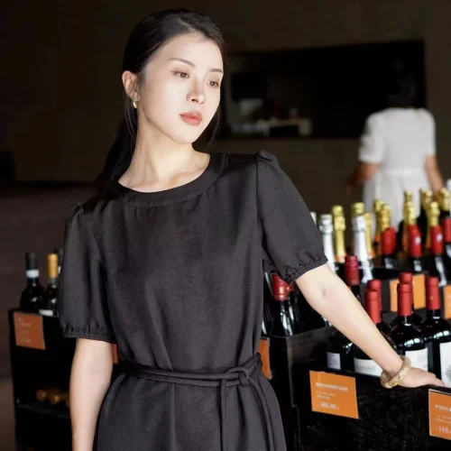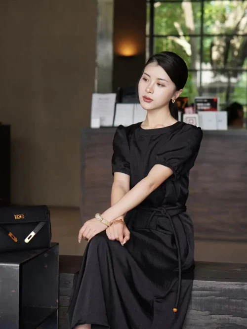 Summer New Mid-length High-end Silk Dress, Sweet French Solid-color Chiffon, Natural and Perfect Vacation Silk Dress