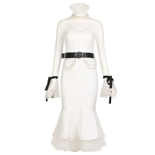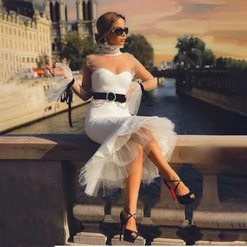 White High Neck Lace Decoration Women’s Backless Dinner Elegant Dress