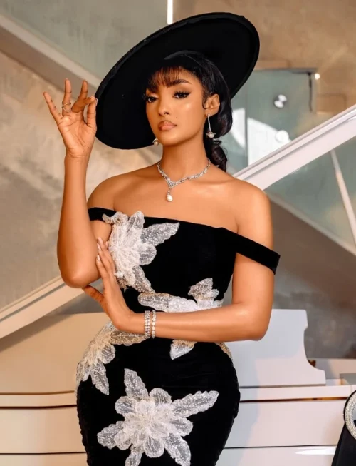 Women’s Appliques Flower Spaghetti Strap Backless Design Celebrity Club Party Black Sleeveless Sexy Midi Bandage Dress