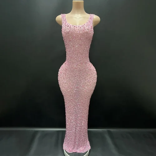 Y2507-TE Summer Dresses Women 2024 pink Prom Dresses Sexy Glitter Dresses Rhinestone Party Sexy for Birthday Party