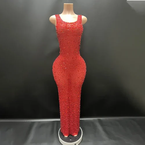 Y2507-TC Summer Dresses Women 2024 Red Prom Dress Sexy Glitter Birthday Party Dress See Through for Evening Party