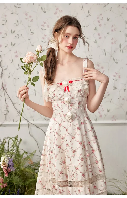 Womens Clothing Manufacturers Summer Holiday Party Vacation Sleeveless Elegant Flora Printed Women’s Lace Strap Dress