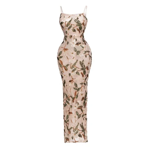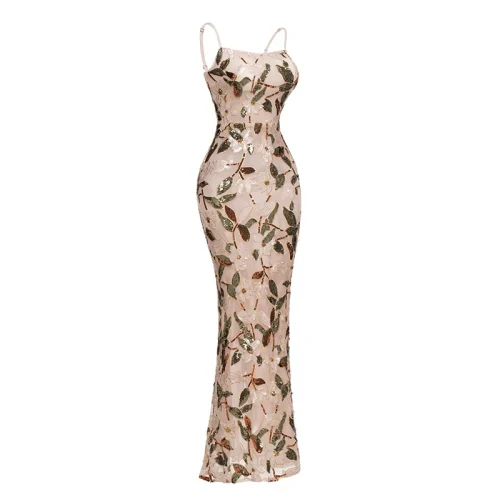 Dignified Elegant Sequins Embroidery Halter Floral Straight Long Classic Club Prom Graduation Cocktail Evening Dresses