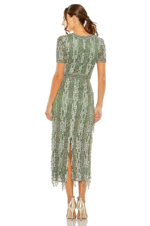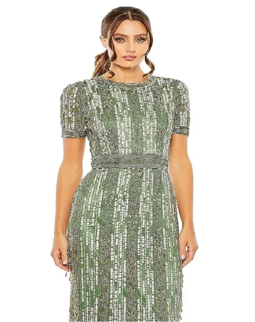 Elegant Beaded Sequin Aline Evening Dress Luxury Formal Long Ball Gown With Short Sleeves for Wedding and Prom Parties