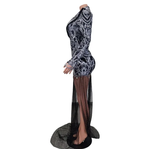 Elegant Rhinestone Sequin High Slit Birthday Prom Suit Coats Long Blazer Dress Women Party Celebration Evening Mermaid Dress