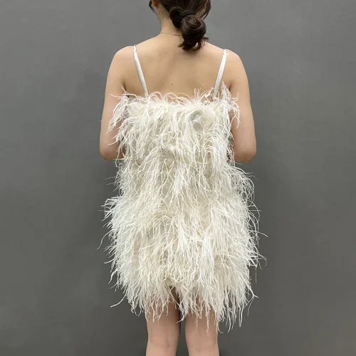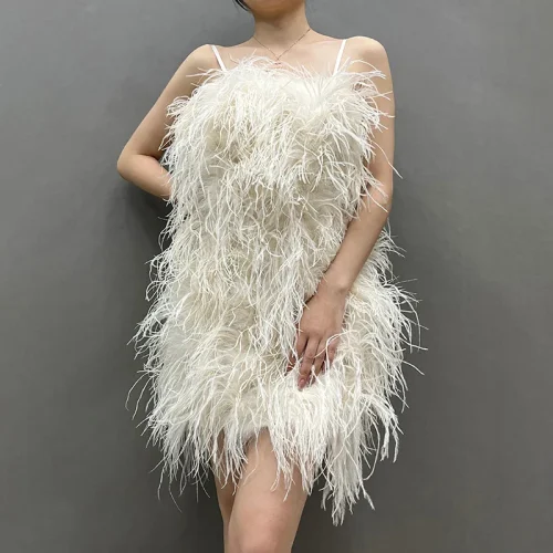 Fashion Evening Fluffy Feather Dress Party Women Sexy Bodycon Ostrich Feathers Dress