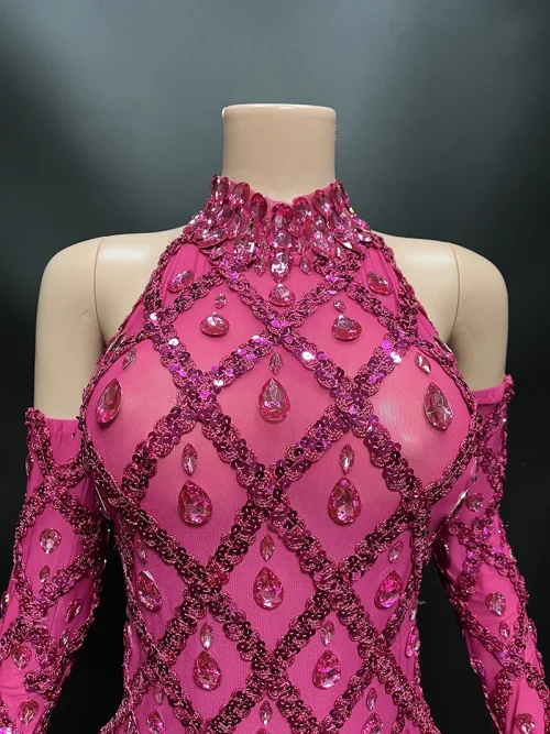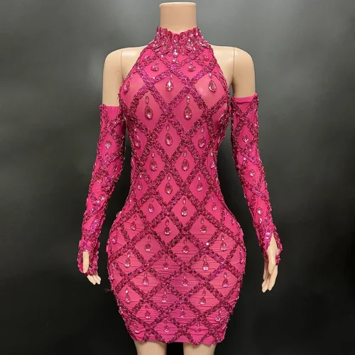 Evening Dresses 2023 Rose Red Shiny Diamonds Sexy Elegant Evening Dresses Party Gown for Evening Party