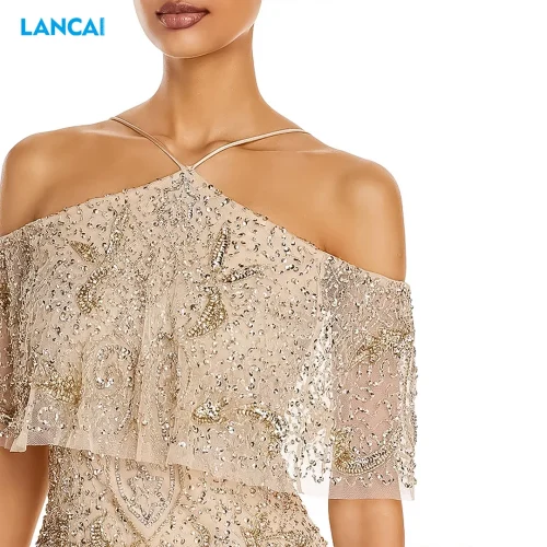 Fashion Dress for Women Wedding Party New 2023 Puff Sleeve Sexy Cape Sleeved Beaded Evening Gown Dinner Dress for Ladies Long