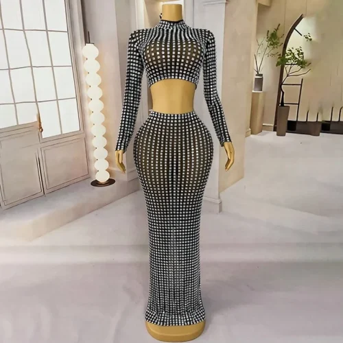 Fashion Design Diamonds Embellished Low Cut Deep V Sexy Dresses Accentuate Chest&hip Sexy Nude Long Dress Luxury Evening Dresses