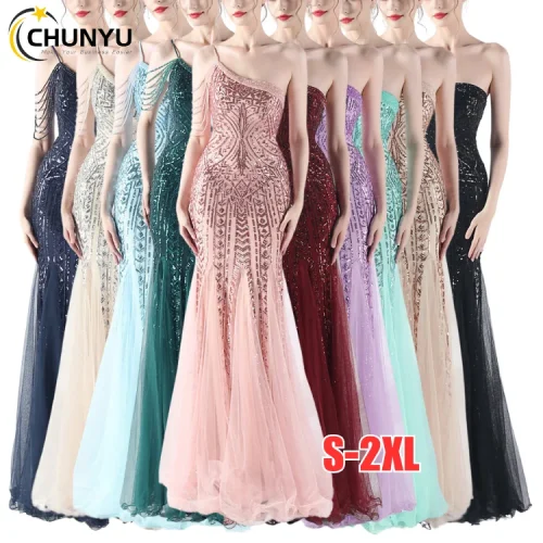 Luxury Women Sequin Long Party Dresses Evening Dinner