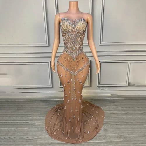 Luxury Evening Dress for Women 2024 Party Dresses Women Evening Elegance Ball Gown Crystal Rhinestone for Birthday
