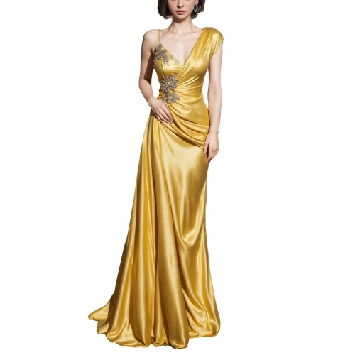 Luxury Beaded Yellow Satin Evening Gown for Women Elegant Princess Mermaid Ball Gown Plus Size Formal for Parties Bridesmaid