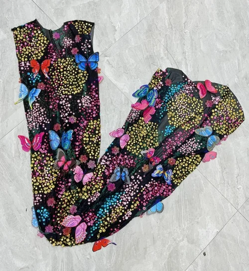 Mesh See Through Colorful butterfly Crystal Evening Dresses Lace Evening Dresses Women’s Clothing Autumn 2024