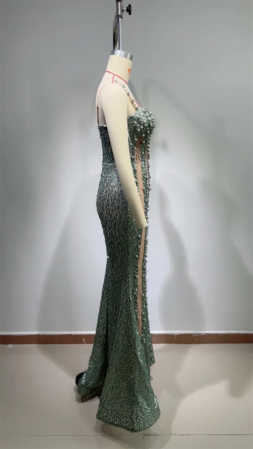 Most Popular Unique U-back Crossover Zipper Evening Gown Halter Dresses Elegant Ball Gown for Bridesmaid Green Straight Skirt